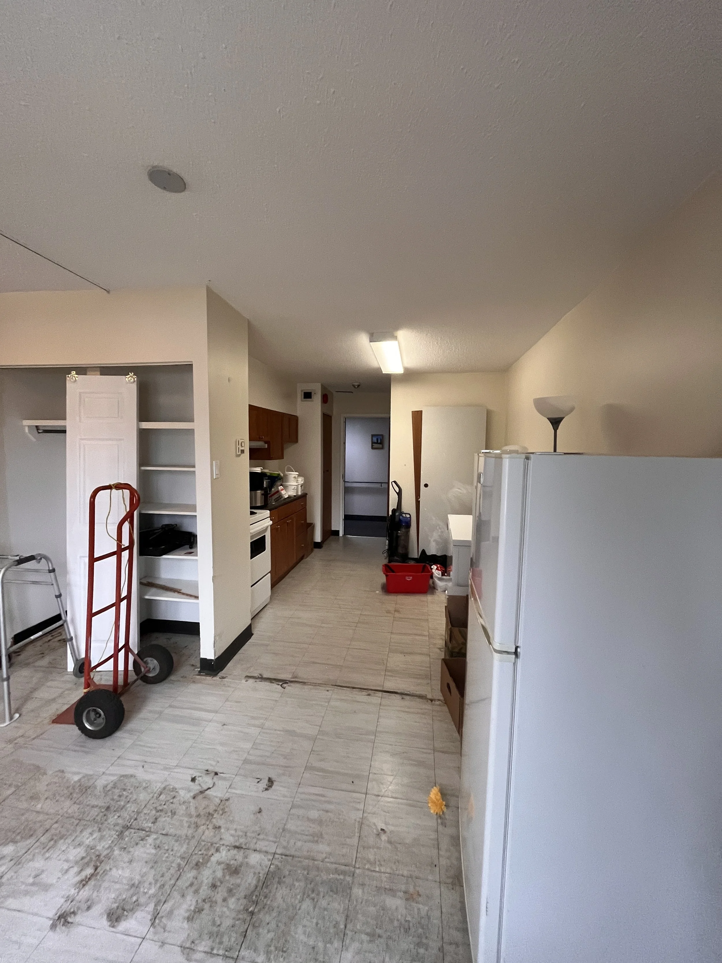 Scope of work: Involves interior renovations to convert an existing suite into a new kitchen, pantry, and universal washroom. This entails selective demolition, including the required Type 1, Type 2, and Type 3 asbestos abatement for materials like vinyl floor tiles, sheet flooring, and drywall joint compound.